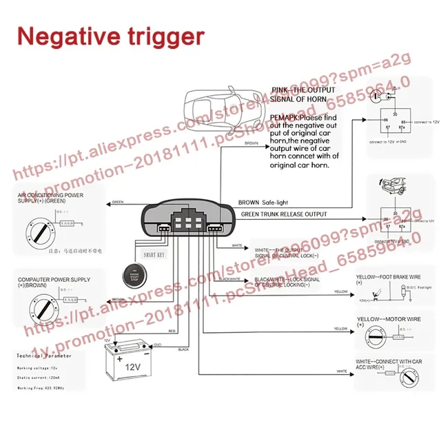 The additional 1-way remote is. Siren is negative outputwe wont send you extra car alarm siren our product has siren jumper to change polarityyou can also buy our siren to connect. Up to 1 cash back Smart key remote engine start PKE car alarm with remote engine start PKE mode choose and push button code learning.