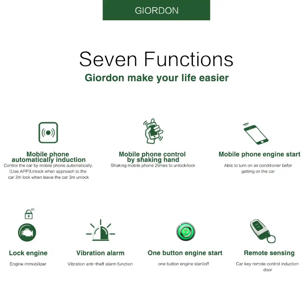 32964199785 Mobile Phone Remote Start car Alarm System With 2-Remote Control 80-100M Shake Switch Lock Keyless Entry PKE Start Stop. Mobile phone control lock fuction when shake mobile phone 2 times car unlock. Automatic sensor switch lock function when mobile or remote control key near the car 2 meters the automatic sensor unlock. Limited Time Sale Easy Return.